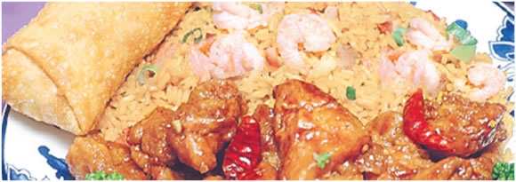 From 10:30 am to 3:00 pm Served w. Pork Fried Rice (or White Rice) & Choice of Wonton Soup, Egg Drop Soup, Hot & Sour Soup or Egg Roll or Can Soda
